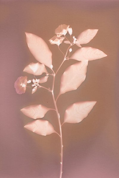 *Lumen print es una técnica fotográfica alternativa con la que obtenemos imágenes, por medio de la acción fotoquímica de la luz sobre papel foto sensible. Sobre el papel se coloca un objeto y se expone a la luz, consiguiendo así una impresión por contacto del objeto u objetos que se hayan puesto sobre el soporte sensibilizado. Después se fija la imagen con fijador fotográfico y se lava con agua. De este modo conseguimos una imagen en blanco – o tonos claros – en las zonas donde no ha incidido la luz y en el tono que el papel fotográfico utilizado nos dé (en este caso tonos tierra, ocres, rosáceos) en las zonas donde sí ha incidido la luz. Debido a su proceso artesanal, los lumen print son imágenes únicas e irrepetibles.