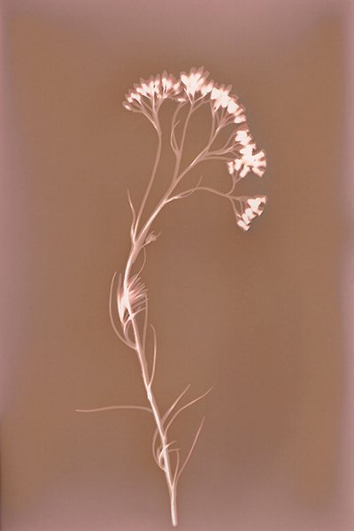 La flor fresca simboliza la plenitud, la belleza de la naturaleza en todo su esplendor. La flor seca, por su parte, representa no solo la fragilidad y el paso inevitable del tiempo, sino también funciona como una analogía de la degradación que el ser humano está infligiendo a la naturaleza. Así como la flor se marchita y pierde su frescura, los ecosistemas están sufriendo un proceso de deterioro acelerado a causa de la actividad humana. Esta imagen se convierte en un símbolo de la vulnerabilidad de nuestro entorno y de cómo la intervención humana, desde la explotación de recursos hasta la contaminación y el cambio climático, está llevando a la naturaleza hacia un estado cada vez más precario. Finalmente, la imagen creada con lumen print es la huella, el rastro, una metáfora de lo que llegó a ser y de lo que podría desaparecer: un eco visual de la existencia, casi un fósil poético.