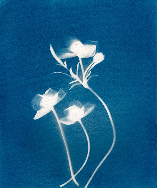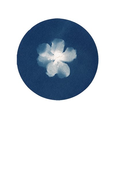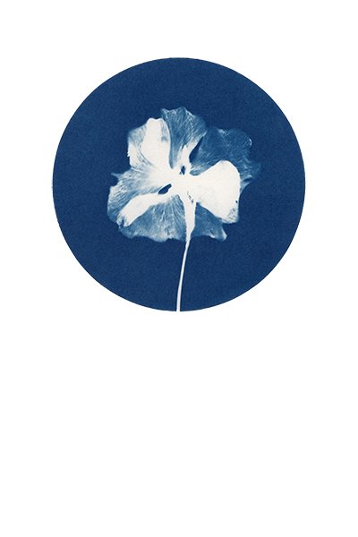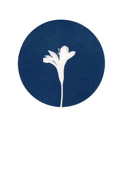 “Flora” nace de mi pasión por las plantas y las flores, y de mi deseo de compartir la belleza que encuentro en la naturaleza. Consiste en una serie de cianotipias de plantas recolectadas en mi pequeño jardín. La cianotipia, con su azul profundo, me permite capturar no solo la forma de las plantas, sino también algo de su esencia. La luz del sol y la química del proceso hacen que cada impresión sea única. Cada hoja, cada flor, revela su textura y sus detalles en este lenguaje azul, tan etéreo y tan real a la vez.